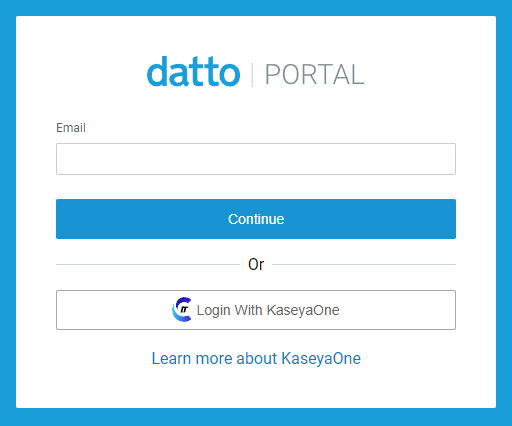 - Log in using your Datto Partner Portal credentials provided in KaseyaOne or your welcome email and the new password you just set.