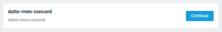 If you end up on the account selection page, click Continue next to the applicable Datto RMM account. The platform name will vary depending on where your Datto RMM account was provisioned. Refer to Datto RMM platforms.
