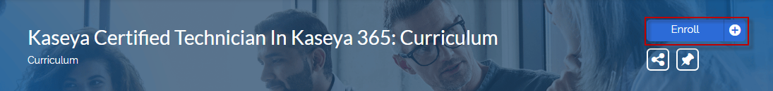 After logging in to KU, you will see a banner across the top for the Kaseya Certified Technician in Kaseya 365 course. Click this banner to open the curriculum page for this course.