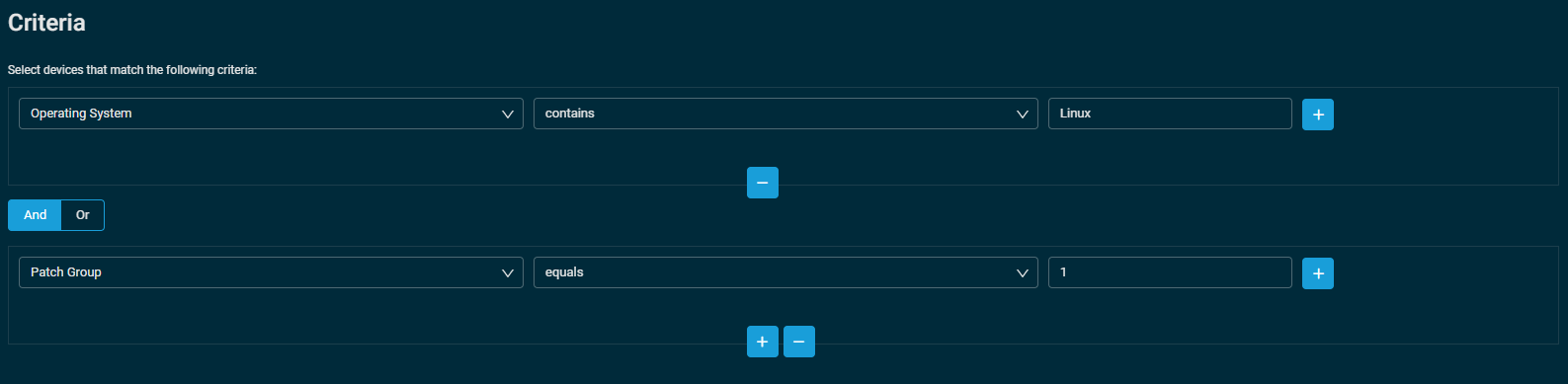 Once this field has been defined on your Linux devices, you can create a custom filter for each patch group, like the example below: